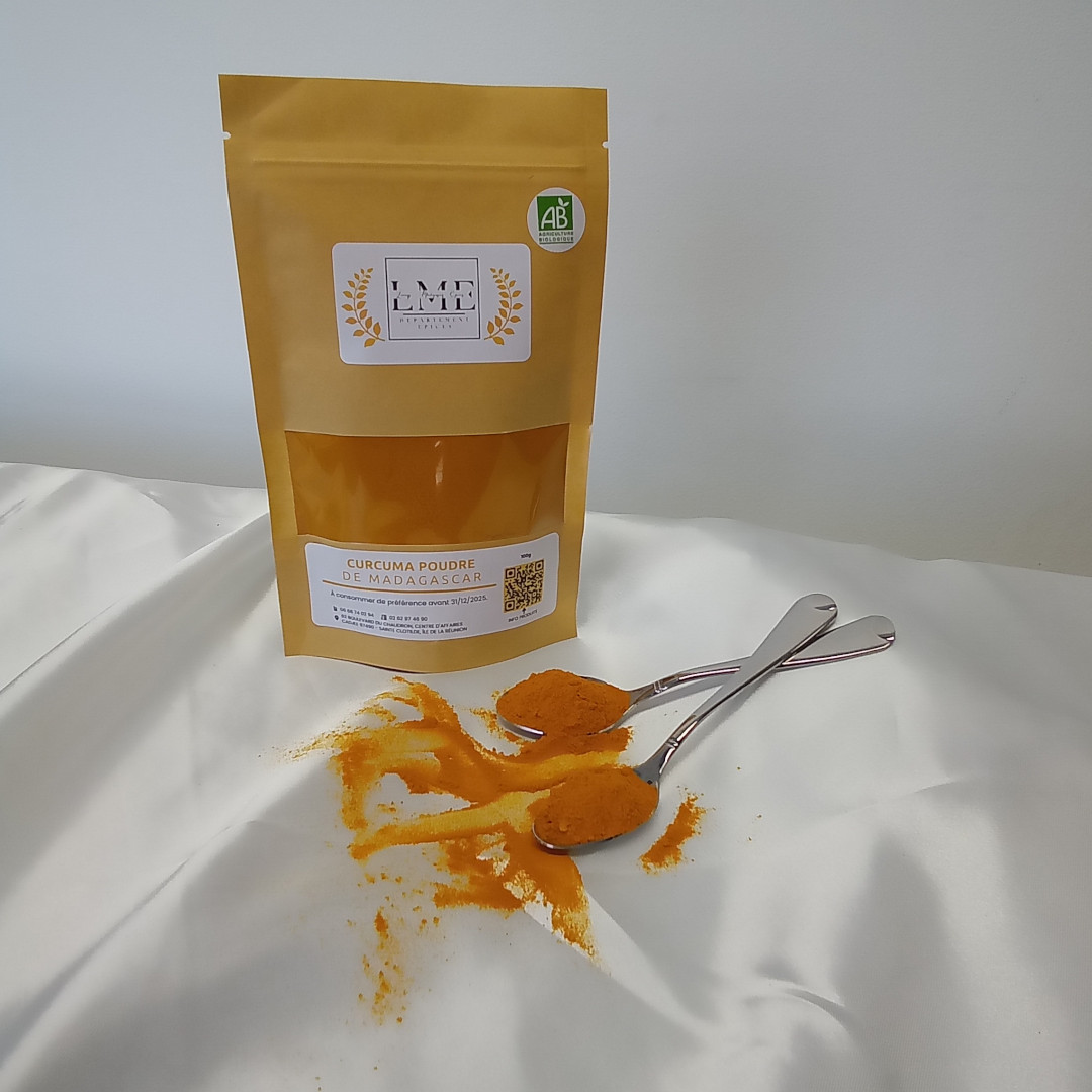 Le curcuma est une plante herbacée également connue sous le nom de « safran des Indes ». Elle appartient à la famille des Zingibéracées et est cultivée pour ses rhizomes, similaires à ceux du gingembre. Cette épice est largement utilisée dans les applications culinaires et possède de nombreuses vertus, telles que des propriétés antioxydantes et anti-inflammatoires. Bien que le curcuma soit originaire d’Inde, il s'est naturalisé dans le monde entier.